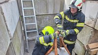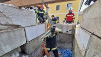 Eine Person war in einem Schacht durch einen schweren Betonstein an den FĂŒĂen eingeklemmt. Mittels hydraulischem GerĂ€t und Hebetechnik musste der Stein angehoben und die Person schonend befreit werden.
