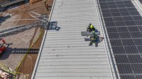 Beim Eintreffen am Übungsort stellte sich folgende Lage dar: Im Zuge von Wartungsarbeiten an Photovoltaikmodulen kam es zu einem Brand im Dachbereich. Ein Monteur befand sich verletzt am Dach, zudem galten mehrere Personen als vermisst.